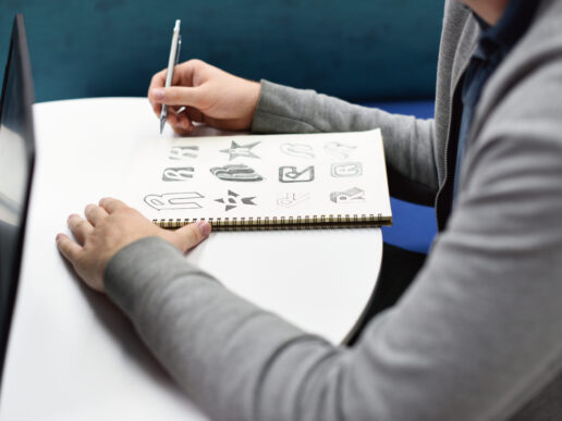 - 草圖組合:接下來設計團隊會進行內部設計草稿概念的檢視,針對完成可能性高的概念,進入草圖組合發展,可以使用紙筆或是在電腦上進一步的精修測試,草圖組合會具體探索圖像符號(Symbol 圖案商標)、字母符號 (Logotype 文字商標)的搭配組合或是獨立使用的可能性。