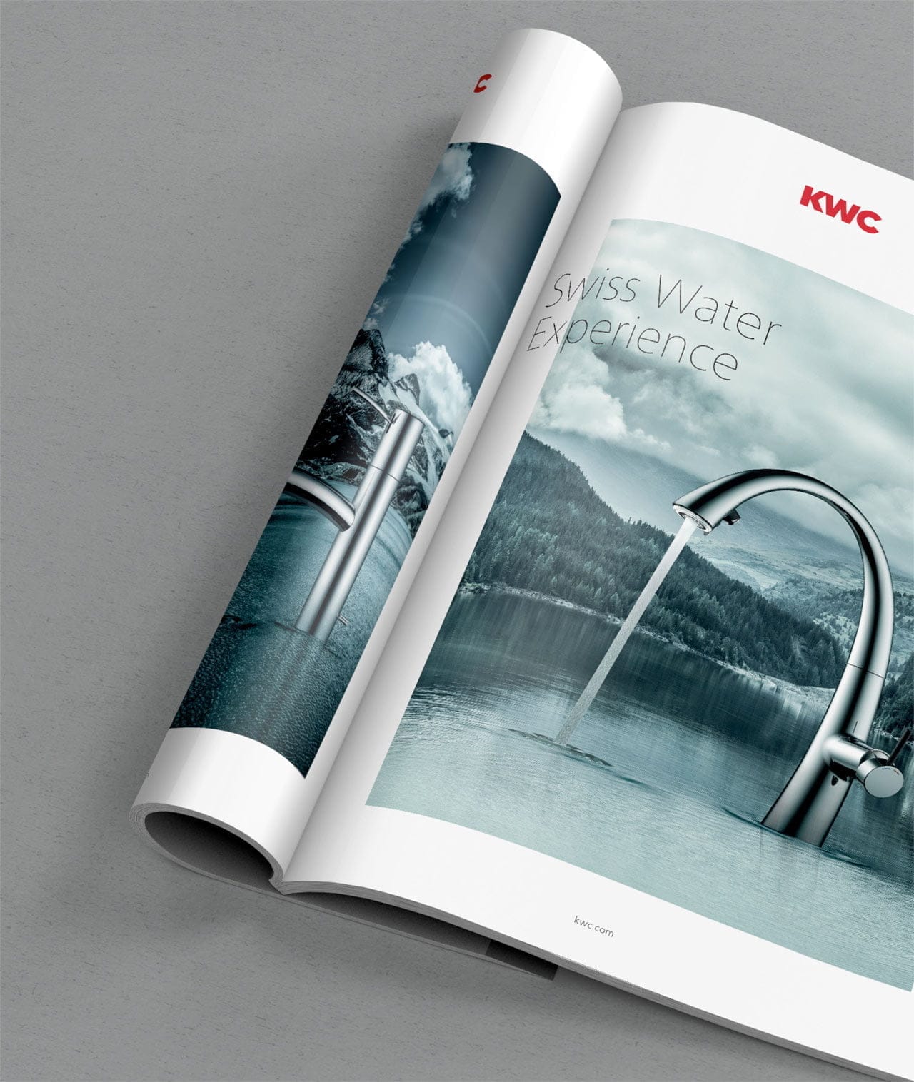 With Vetica’s help, KWC has repositioned itself on the market using holistic brand analysis and a brand strategy. On the basis of a new brand code, the brand values and the entire presentation of the KWC brand were revised. The new image is determined by its striking logo / word mark, its imagery and its typography. The claim “Swiss water experience” was then consistently transferred to all touchpoints.