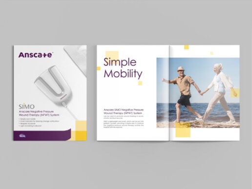 瑞致協助安適康品牌旗下的負壓傷口治療系統 (NPWT) 產品開發案,以賦予簡單易懂的名稱開始,簡單好攜帶 (Simple Mobility) 為其概念,產品命名為“SIMO“,以建立出品牌重要資產:產品命名策略。此外發展品牌理念的溝通設計,也是瑞致的重要工作任務 – 協助 SIMO 產品,發揮極致的品牌溝通設計系統,呈現高度自信、創新優勢的品牌特質。