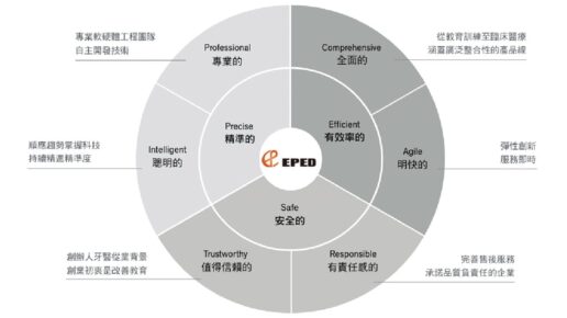 醫百科技(EPED Inc.)是一醫療設備製造商,專注於研發微創導航領域的先端產品。最初,醫百從牙科教育訓練系統起家,在核心技術的廣泛應用下,產品線逐漸擴展至臨床植牙、甚至踏入醫療手術領域。然而,當跨足牙科、醫療截然不同的市場,品牌定位也面臨挑戰。瑞致的任務,即是協助醫百由內而外、從結構上改變,進化為能長久發展的全新形象。