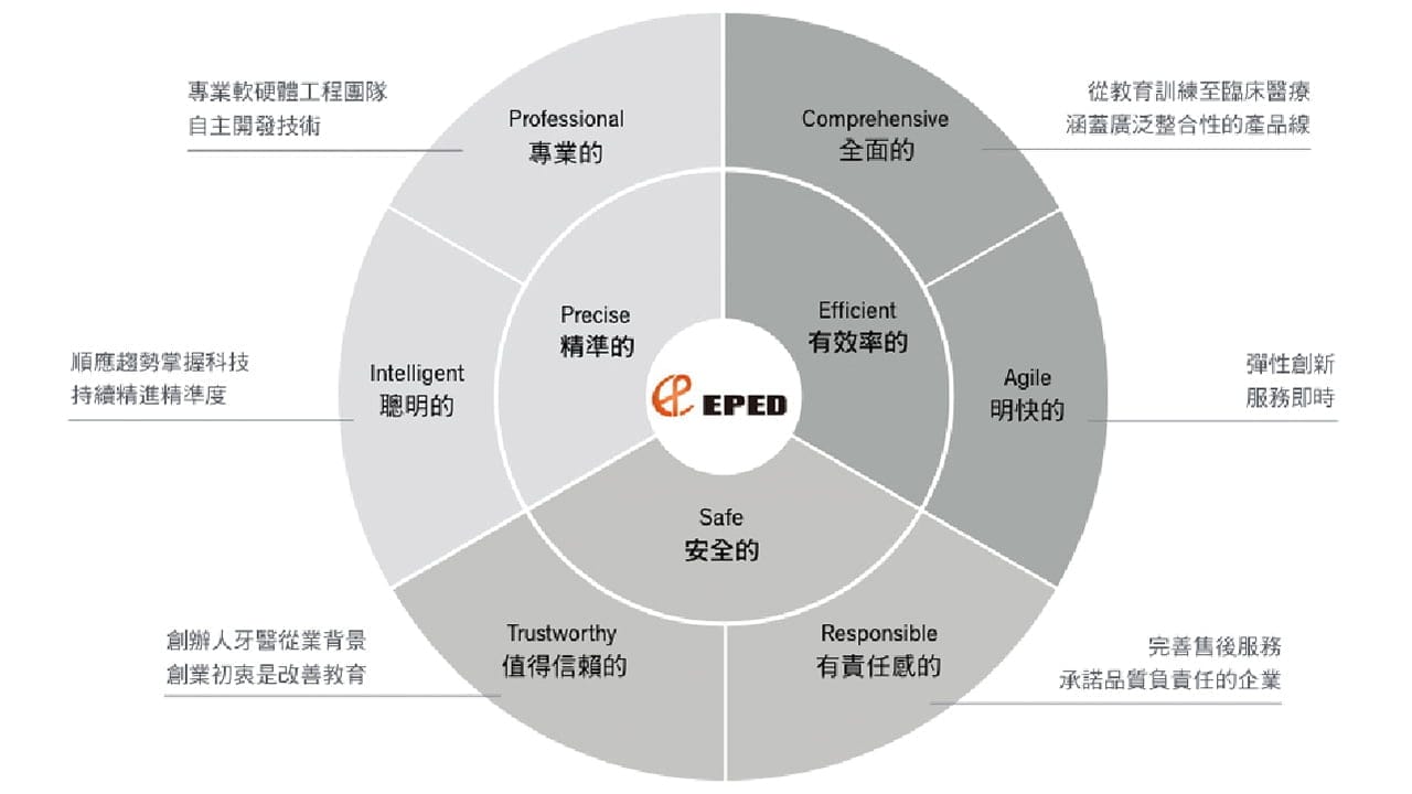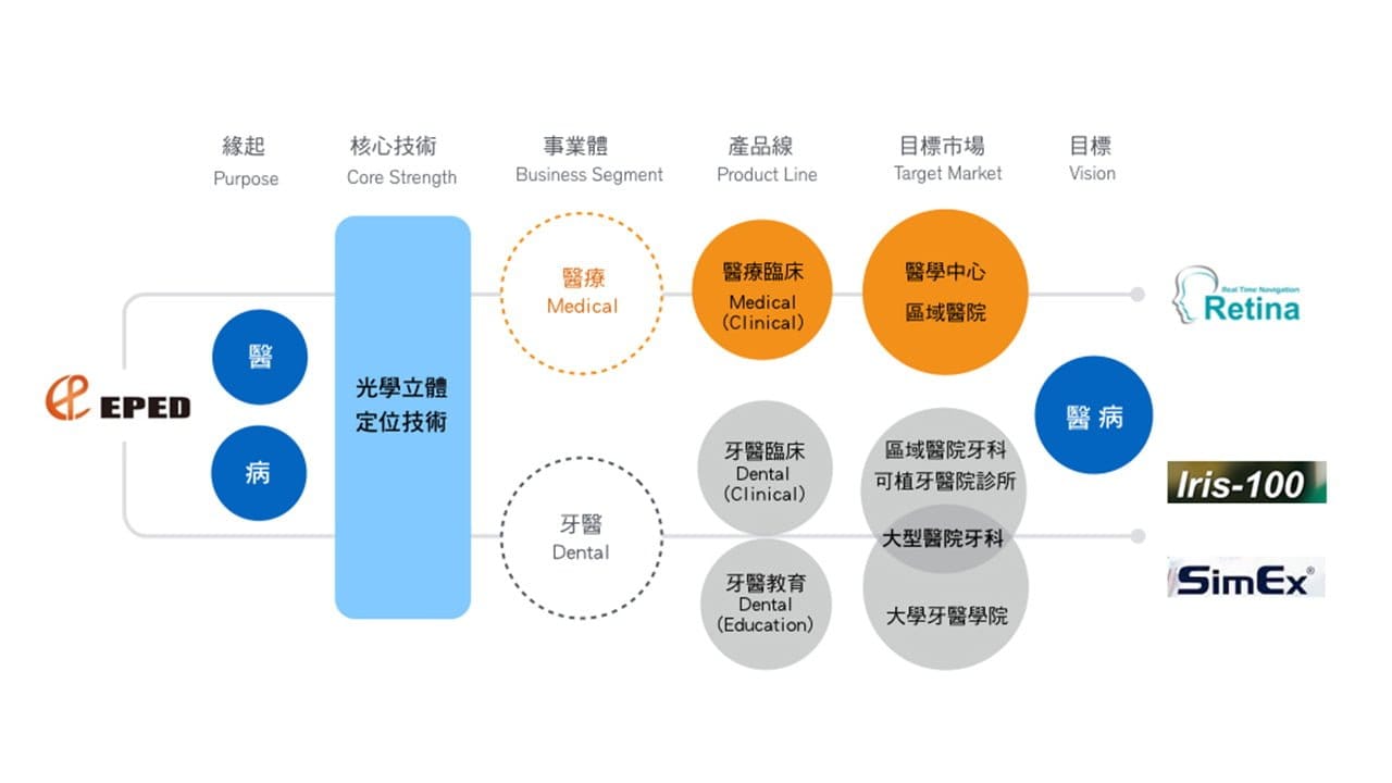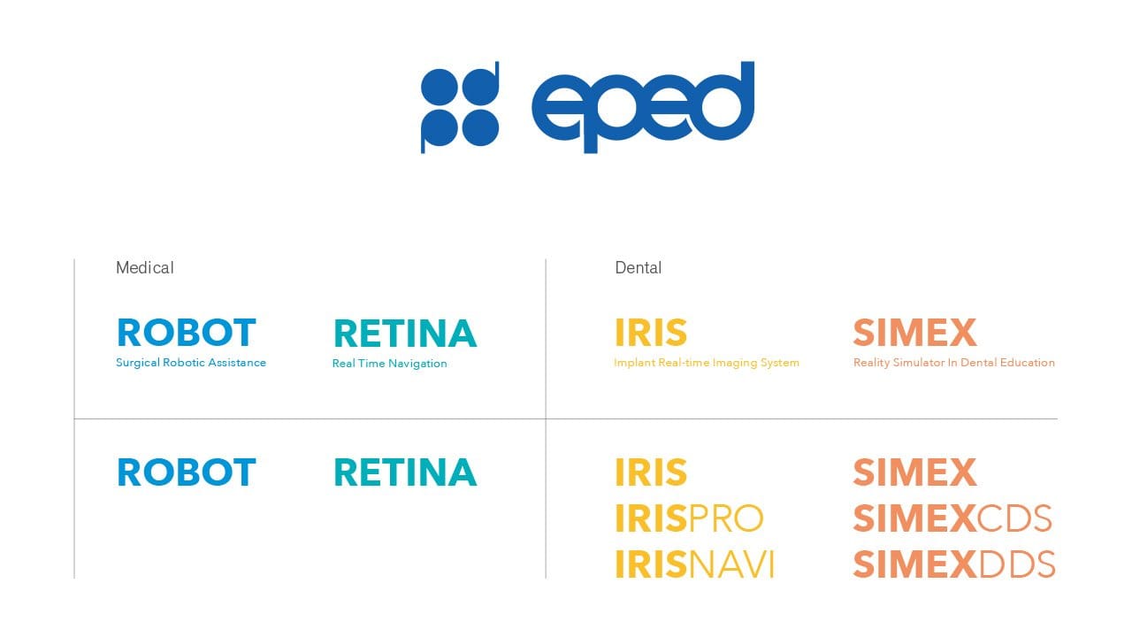 醫百科技(EPED Inc.)是一醫療設備製造商,專注於研發微創導航領域的先端產品。最初,醫百從牙科教育訓練系統起家,在核心技術的廣泛應用下,產品線逐漸擴展至臨床植牙、甚至踏入醫療手術領域。然而,當跨足牙科、醫療截然不同的市場,品牌定位也面臨挑戰。瑞致的任務,即是協助醫百由內而外、從結構上改變,進化為能長久發展的全新形象。