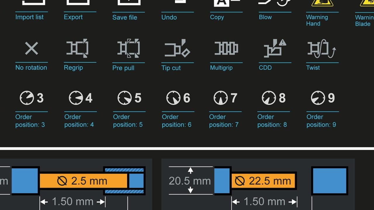 全新的一致性企業產品設計語言是跨時代的經典設計,並且在開發新機器時的設計導入相當容易。 整體開發過程著重在特定的品牌策略及人體工學的觀察:包括使用者介面設計也是全面展現其產品外觀的設計導入、強化 Komax 的專業知識以及其在電纜加工位居領導地位的整體操作介面風格。 工作區的LED照明提供了最佳視野,讓人體工學設計的扶手能在健康的環境輕鬆的地操作機器 。