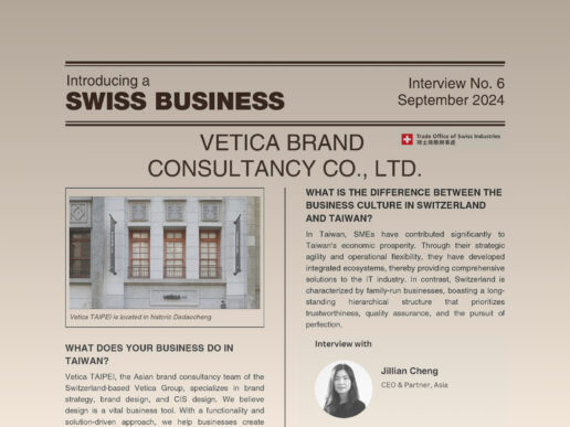 In the interview below, Jillian Cheng, CEO & Partner in Asia at Vetica TAIPEI, shares her observations of the Taiwanese market and more with Trade Office of Swiss Industries.